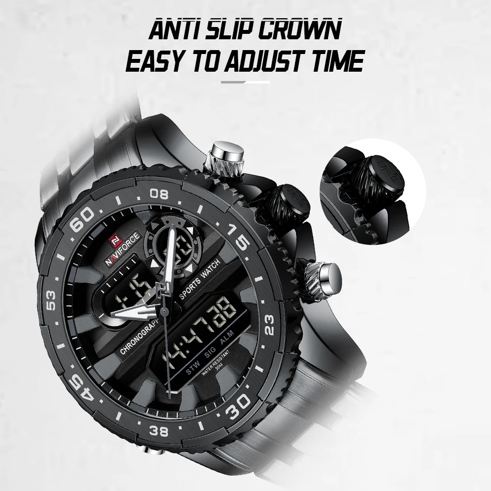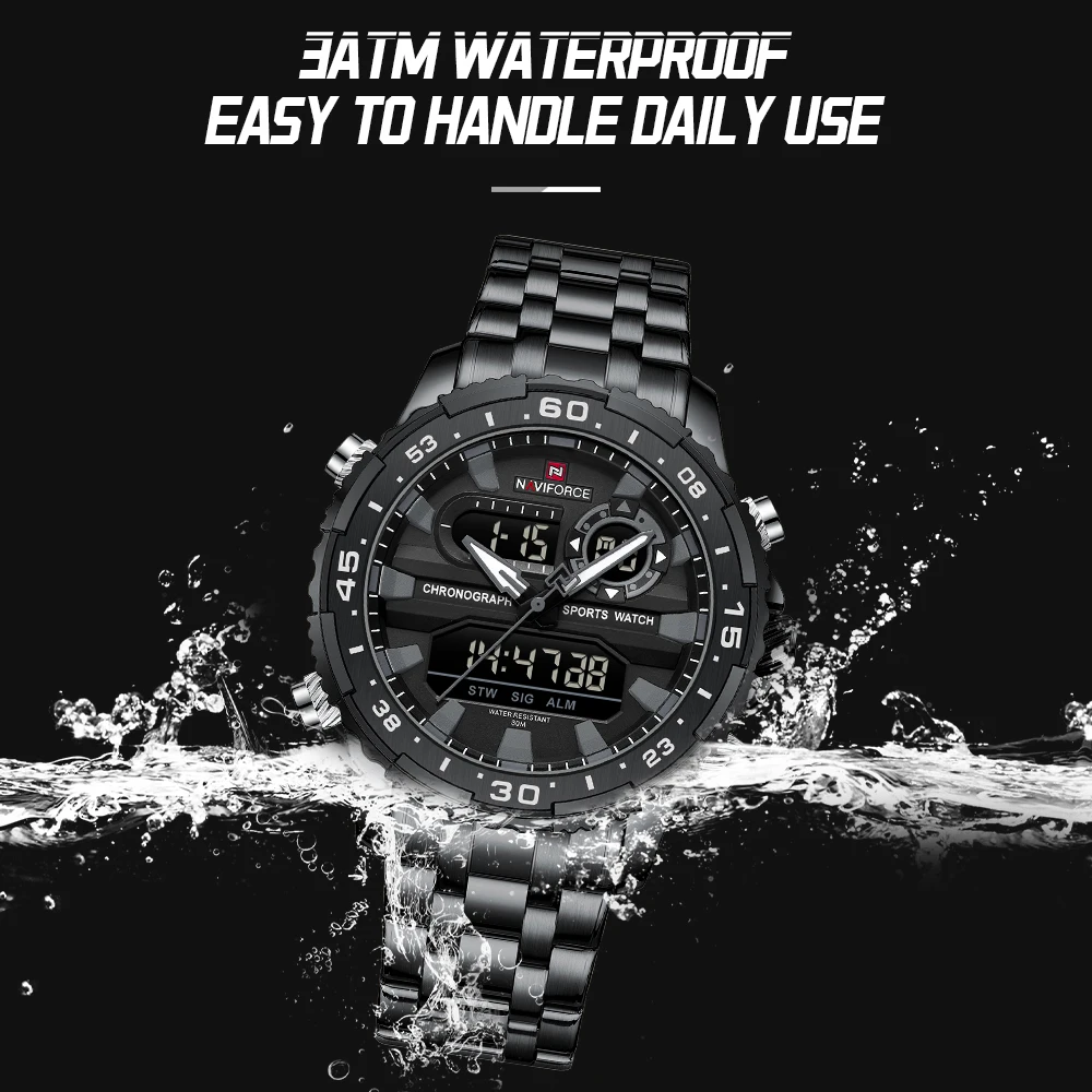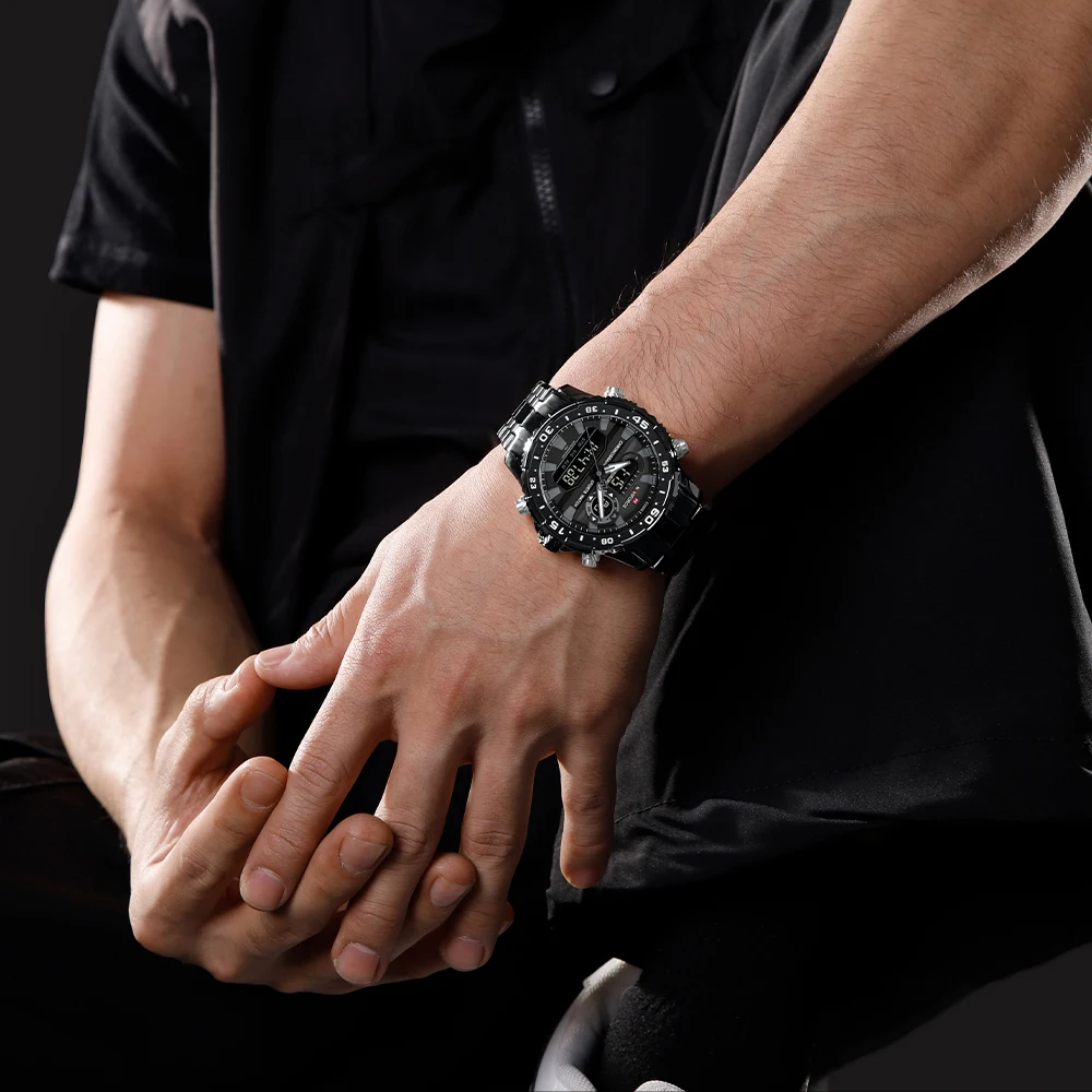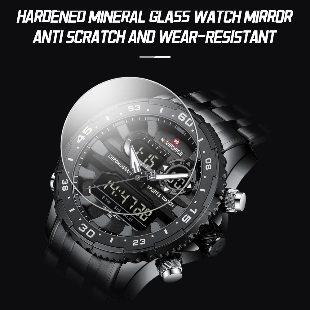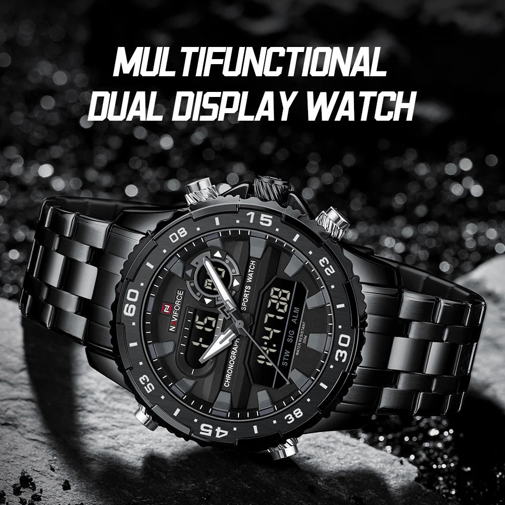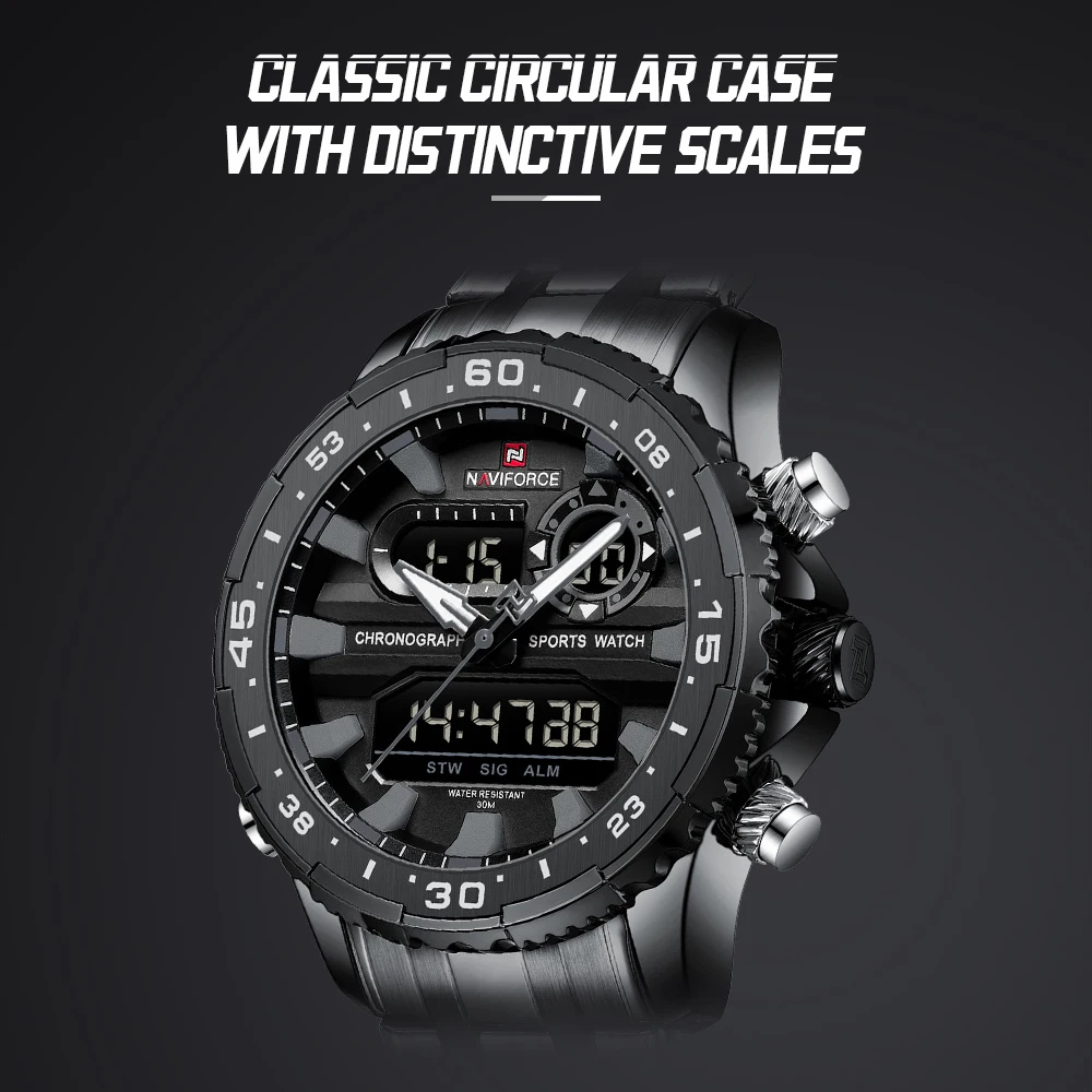 2024 Top Brand NAVIFORCE Men’s Watch Quartz Analog LCD Digital Wristwatch Male Stainless Steel Strap Water Resistant Date Clock