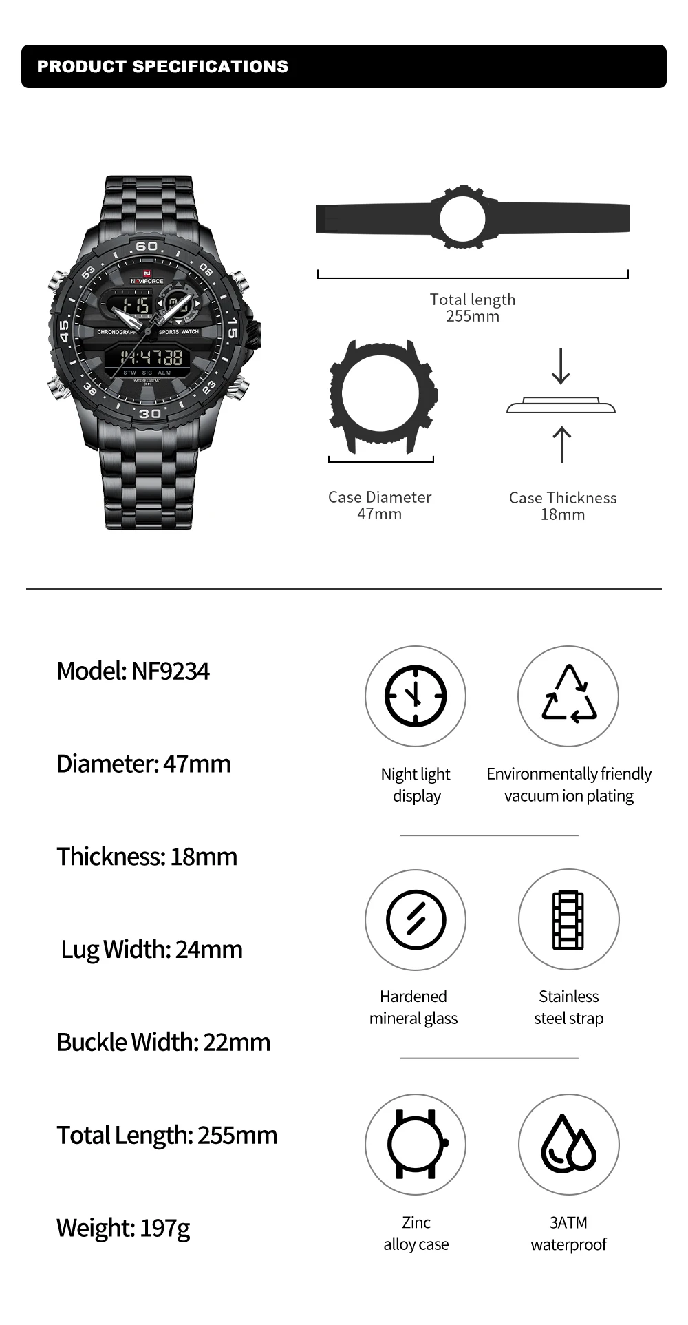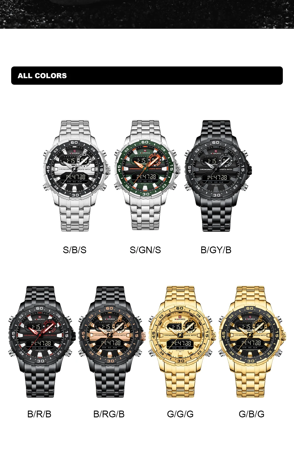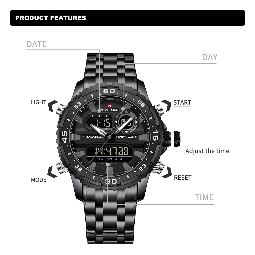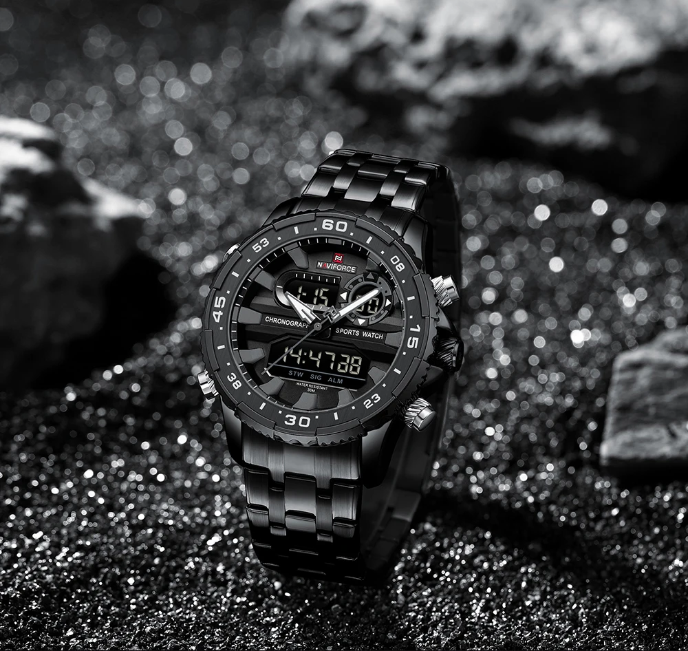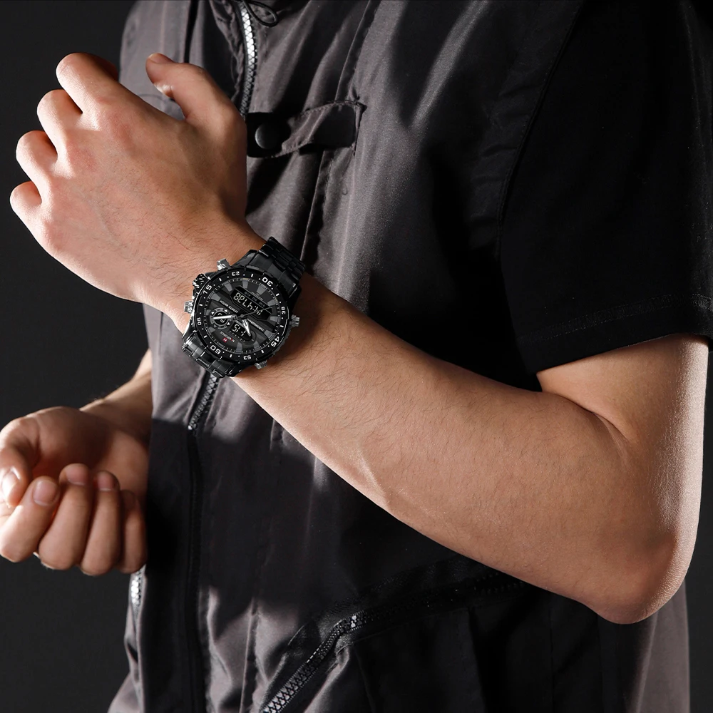 2024 Top Brand NAVIFORCE Men’s Watch Quartz Analog LCD Digital Wristwatch Male Stainless Steel Strap Water Resistant Date Clock