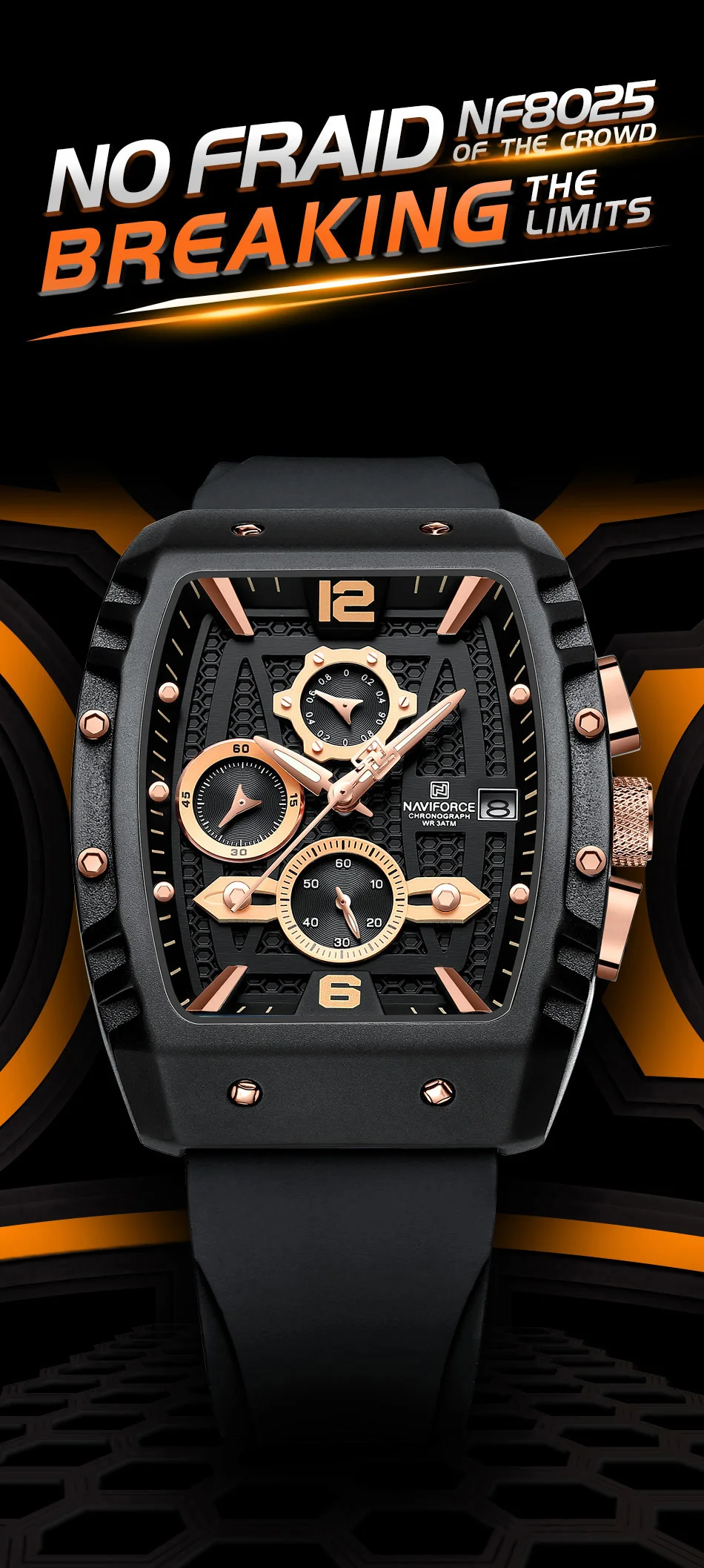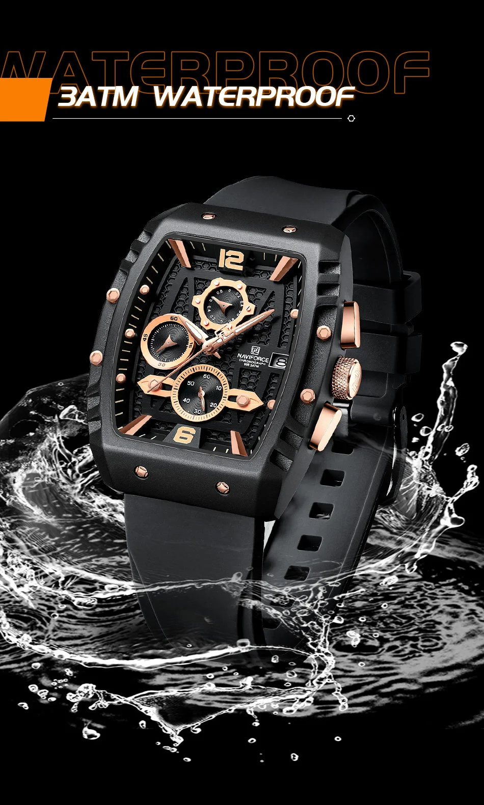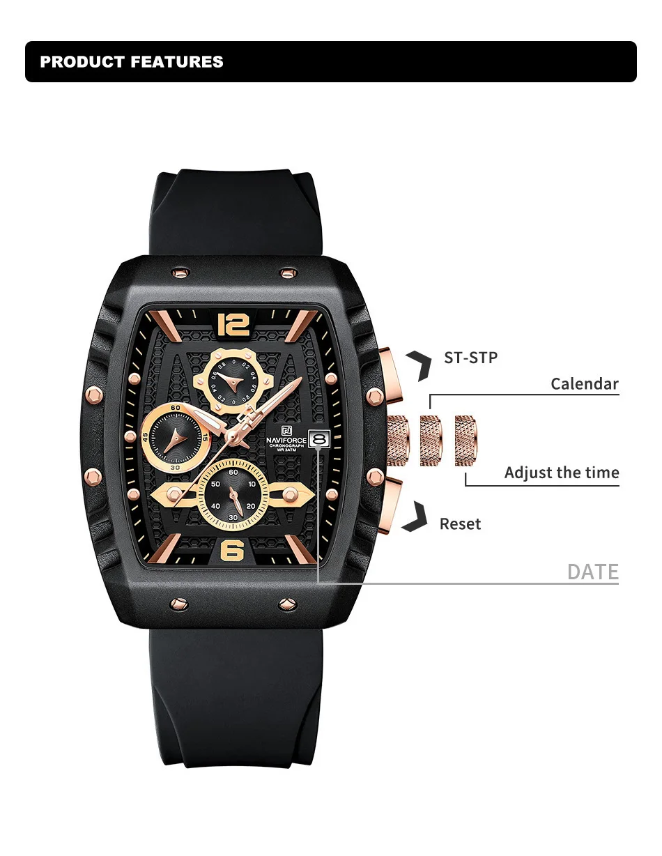 NAVIFORCE Brand New Design Men’s Watches Silicone Band Military Quartz Wristwatches Fashion Waterproof Clock Relogio Masculino