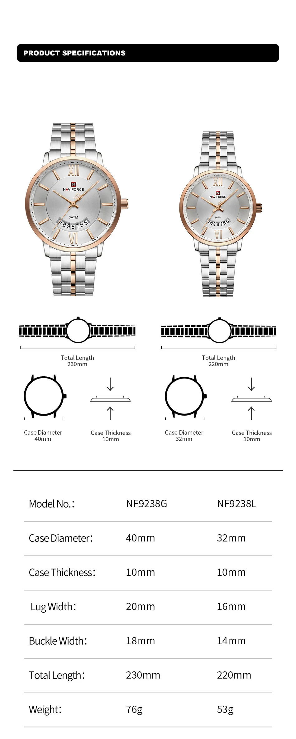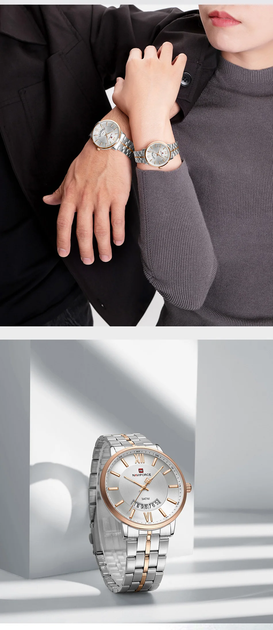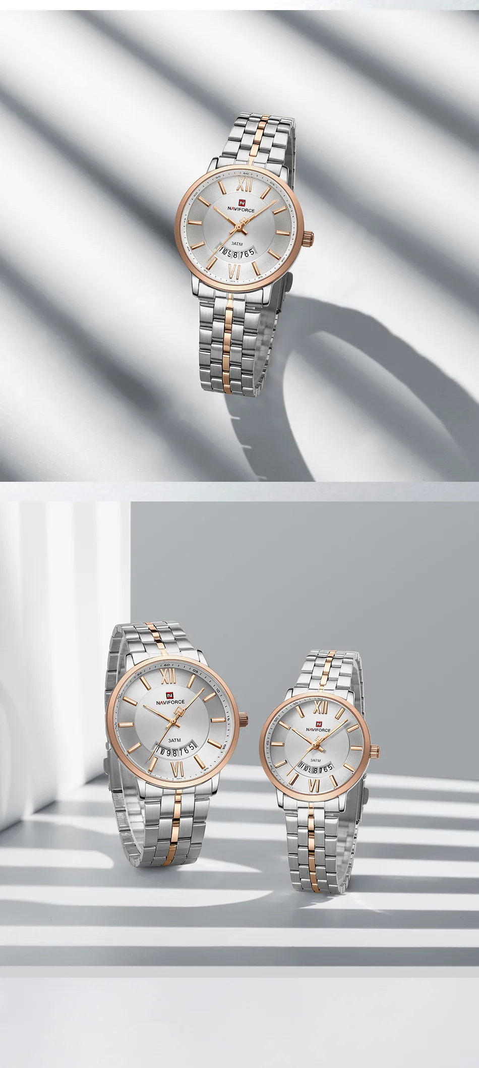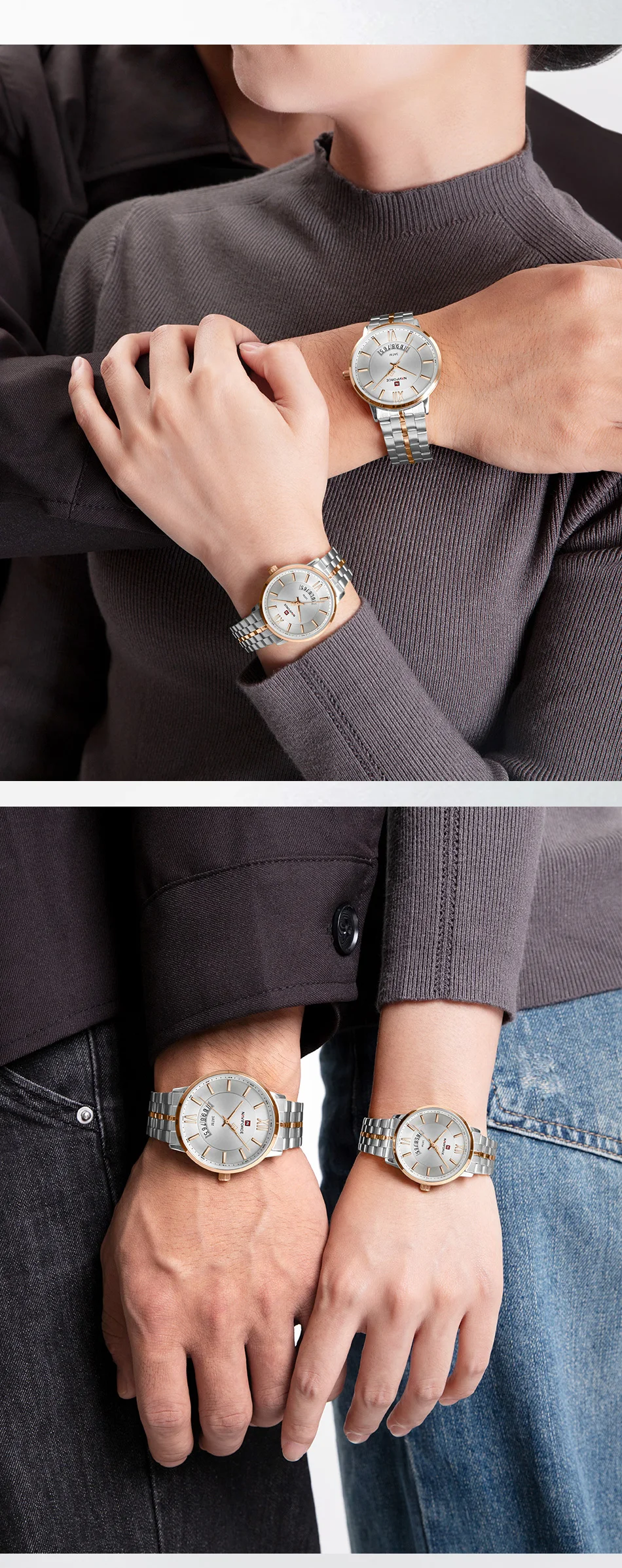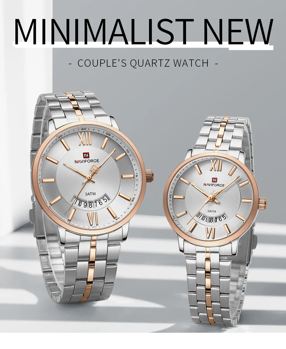 NAVIFORCE Luxury Couple Watch Golden Fashion Stainless Steel Lovers Watch Quartz Wrist Watches For Women Men Simple Wristwatch