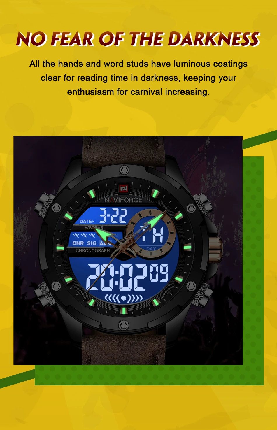 NAVIFORCE Luxury Men Quartz Watch Military LED Digital Waterproof Wristwatch Sport Chronograph Male Clock Relogios Masculino